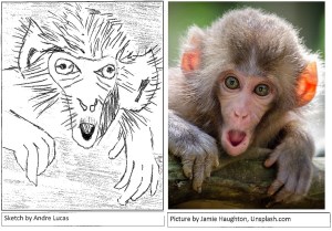 Suppose I show you a picture of a monkey. Of course, if the picture is a coarse sketch, you get the rough idea, but miss many of the details. If I show you a photo instead, you get all the details and corresponding wonder.